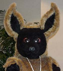 When my maker (Richard Halliday) was researching for his first costume, the Academy of Sciences in San Francisco was holding a large bat symposium. They had many samples as well as great information of bats. The best demo was a model of a bat skeleton blown up to the size of a human being. They were trying to show how close bats were to humans. It would take a vivid imagination to believe my friend Ad looks the same as a creature with a skeleton like this, but after a few hours of intense studying at the Academy of Sciences, and maybe a few beers under the belt later, you just might pull it off.